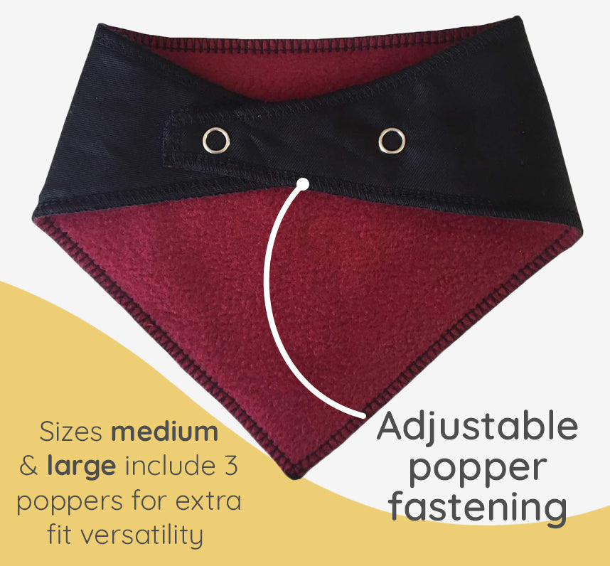 Made with a cotton fabric front, and a luxuriously soft, lamb spun poly fleece reverse. Can be worn with your dog’s collar and lead, or any harness. Adjustable sizing, with a popper stud fastening system, easy to put on and take off.Â